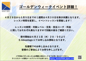 当スクールは4月29日から5月5日の1週間は通常レッスンは休講となります。